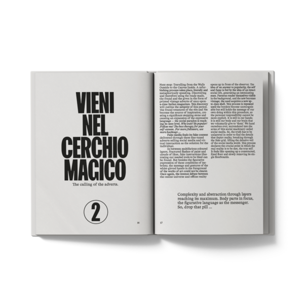 Philipp Klammsteiner, born in 1978 in Bolzano, is a graphic designer and graffiti artist. At the age of 14 he came across the underground graffiti scene. At the age of 17 he discovered his passion for graphic design, which eventually developed into his profession and today he lives out his creativity in his graphic design studio. Social media awareness is nothing more than a social accident. This statement defines a piercing journey of graffiti, collage and painting, surgically dissecting a place in time where the real and the virtual intersect. The works are accompanied by a story written by Katharina Theresa Mayr.